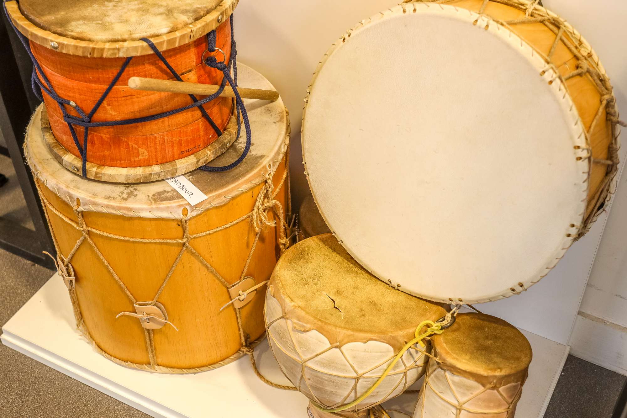 des souvenirs de voyage, instruments traditionnels de pays du pourtour méditerranéen dont les techniques de fabrication et de jeu ont peu changé depuis des siècles et qui trouvent leur place dans la restitution des musiques du Moyen-Âge.